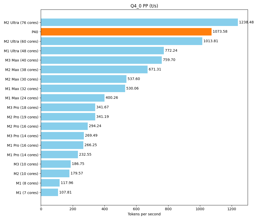 Im Bereich Prompt-Parsing schlägt sich der P40 hervorragend. Bei der Textproduktion liegt er oberhalb der Pro-Reihe und im unteren Bereich der Max-Reihe.